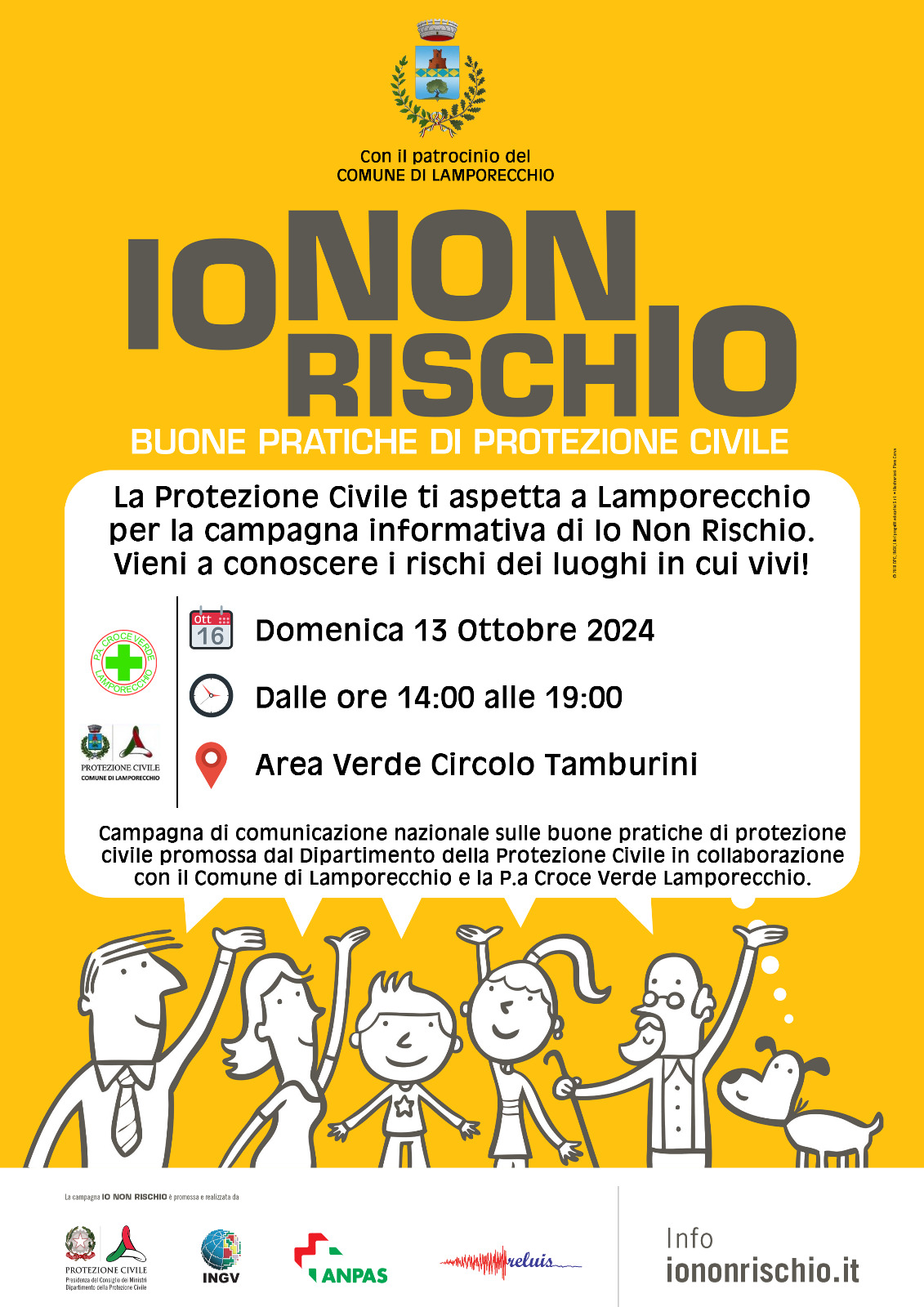 In occasione della Giornata Nazionale della Campagna "IO NON RISCHIO", il Comune di Lamporecchio insieme ai volontari della Croce Verde e della Vab di Lamporecchio, sarà a disposizione della popolazione per far conoscere più da vicino i rischi del territorio ed i buoni comportamenti da adottare.