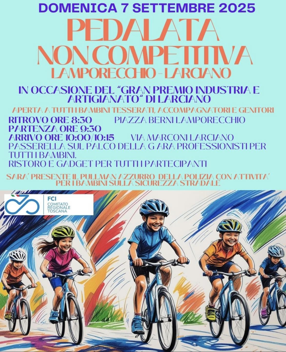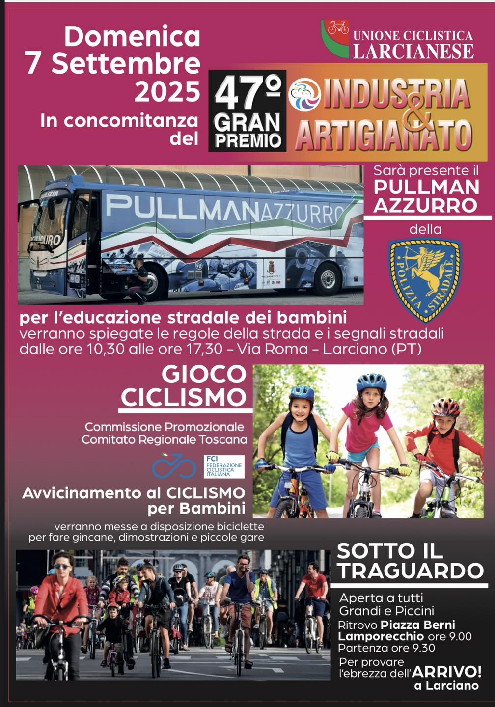 Domenica 7 settembre 2025 il nostro territorio sarà ancora una volta protagonista con il Gran Premio Industria & Artigianato di Larciano e con una giornata di festa che coinvolgerà grandi e piccoli.