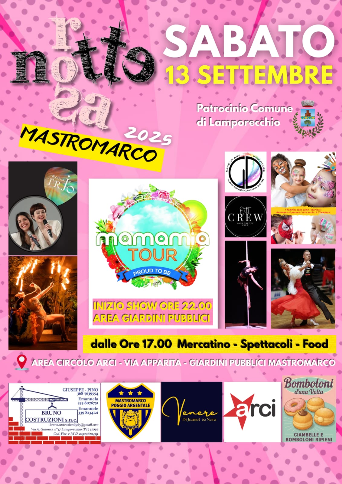 L'amministrazione comunale è lieta di invitarvi alla Notte Rosa a Mastromarco che si svolgerà sabato 13 settembre dalle ore 17.00 presso l'area del Circolo Arci - Via Apparita - Giardini Pubblici Mastromarco.