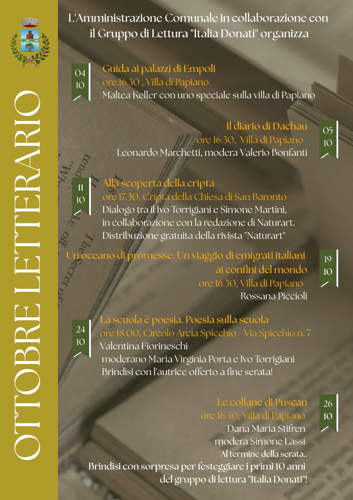 Anche Il mese di ottobre sarà dedicato alla letteratura con una rassegna itinerante.