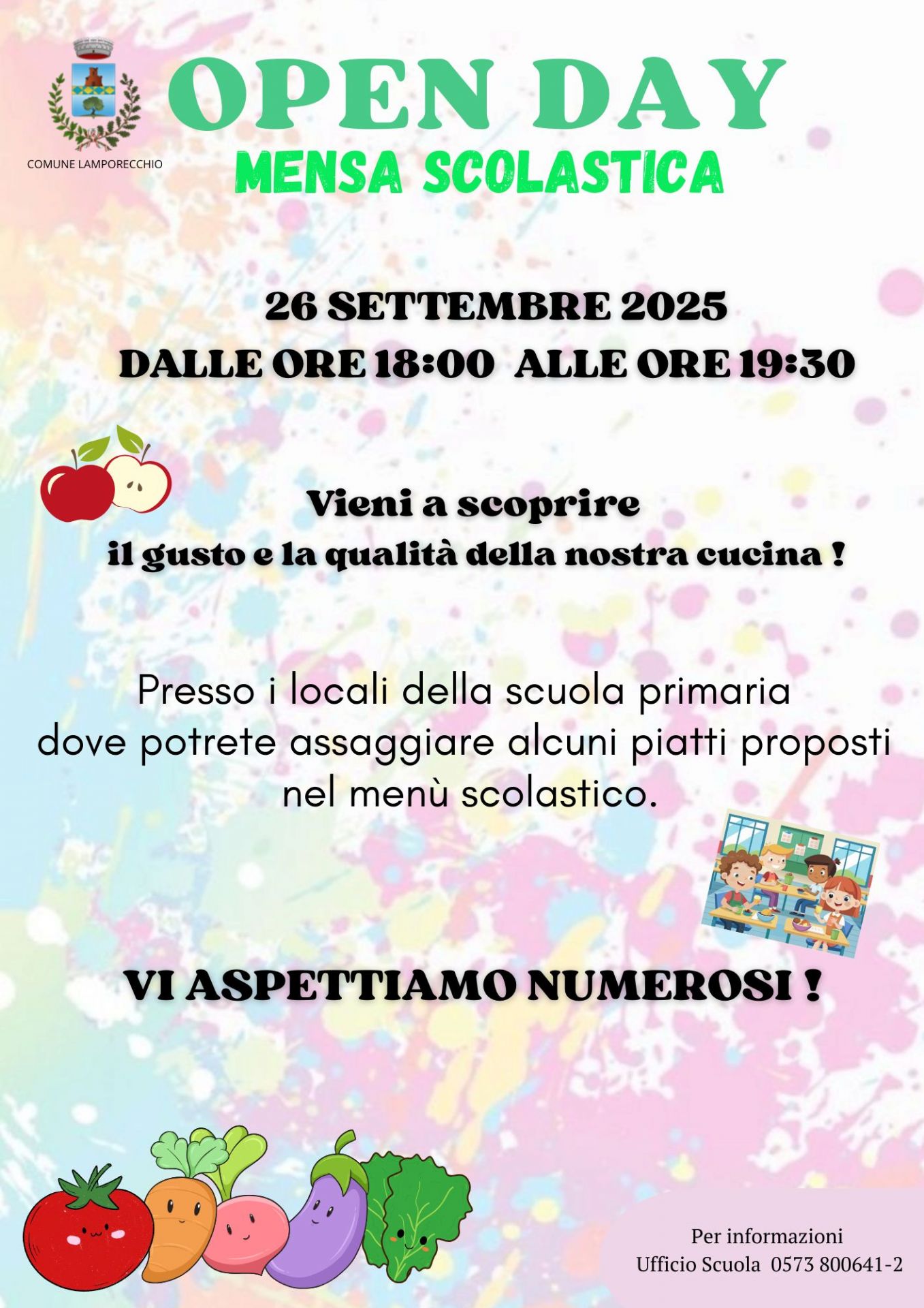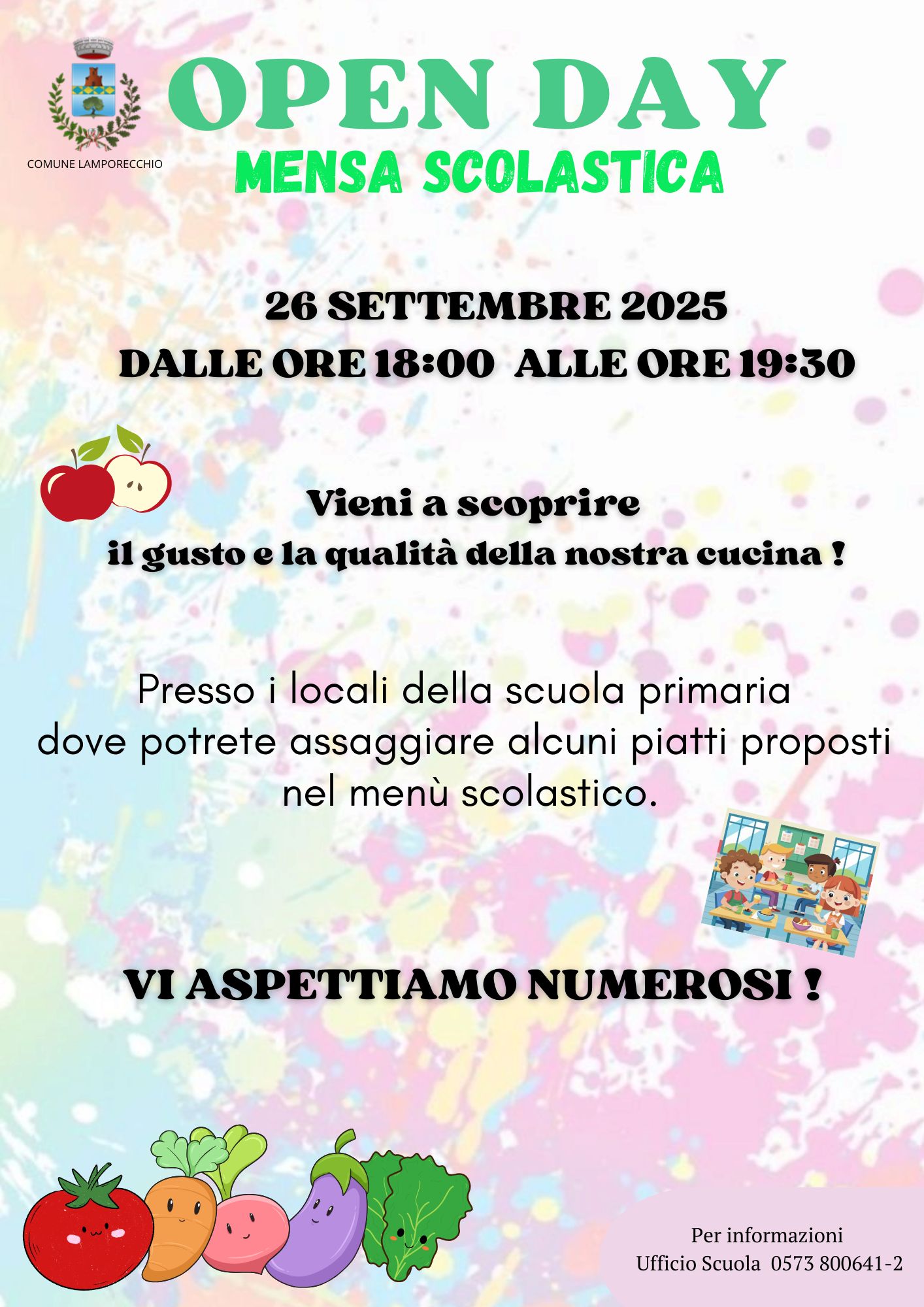 Venerdì 26 settembre, dalle ore 18:00 alle ore 19:30, si terrà l'Open Day della mensa nei locali della scuola primaria "G. Dei", in Piazza Gettulio Calugi.