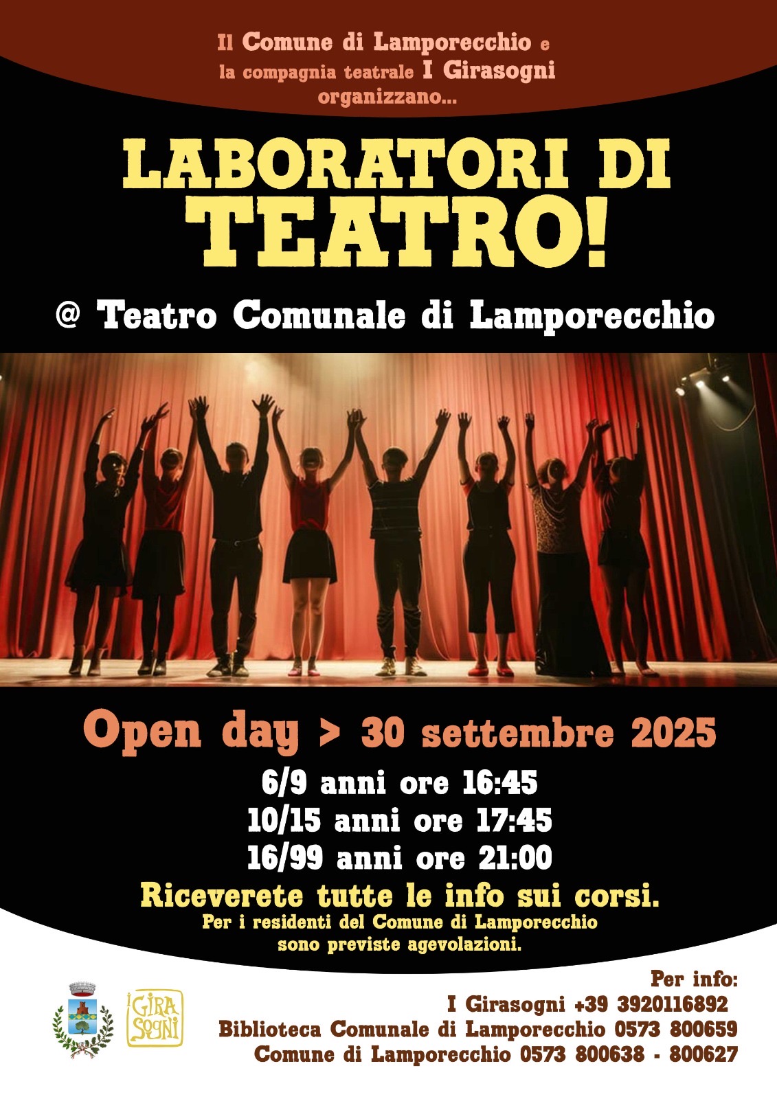 Il Comune di Lamporecchio e la Compagnia teatrale "I Girasogni" organizzano laboratori di teatro per tutte le età!
