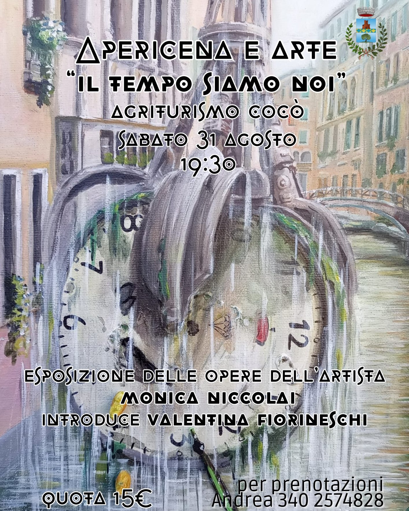 Sabato 31 agosto a partire dalle 19:30 negli spazi dell'Agriturismo Cocò si terrà l'esposizione delle opere dell'artista Monica Niccolai introdotte dalla Dottoressa Valentina Fiorineschi.