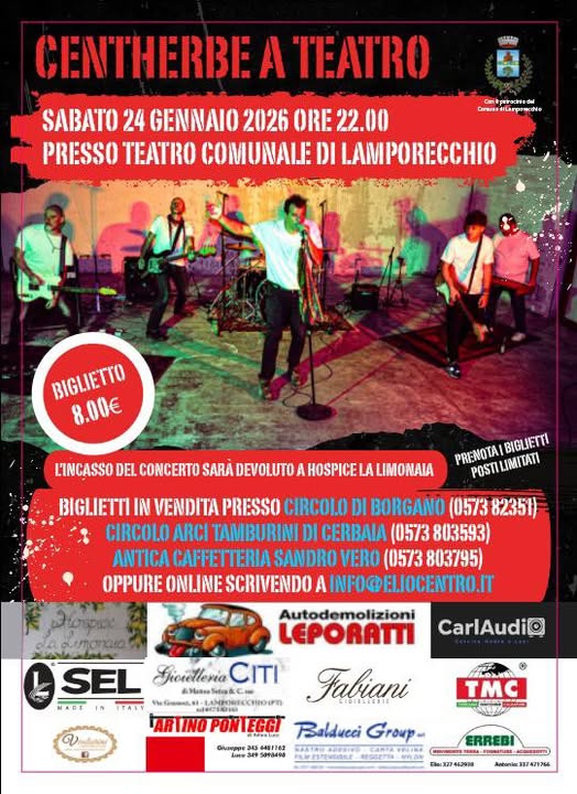 Sabato 24 gennaio 2026, alle ore 22.00, il Teatro Comunale di Lamporecchio ospita un appuntamento musicale: Centherbe in concerto.