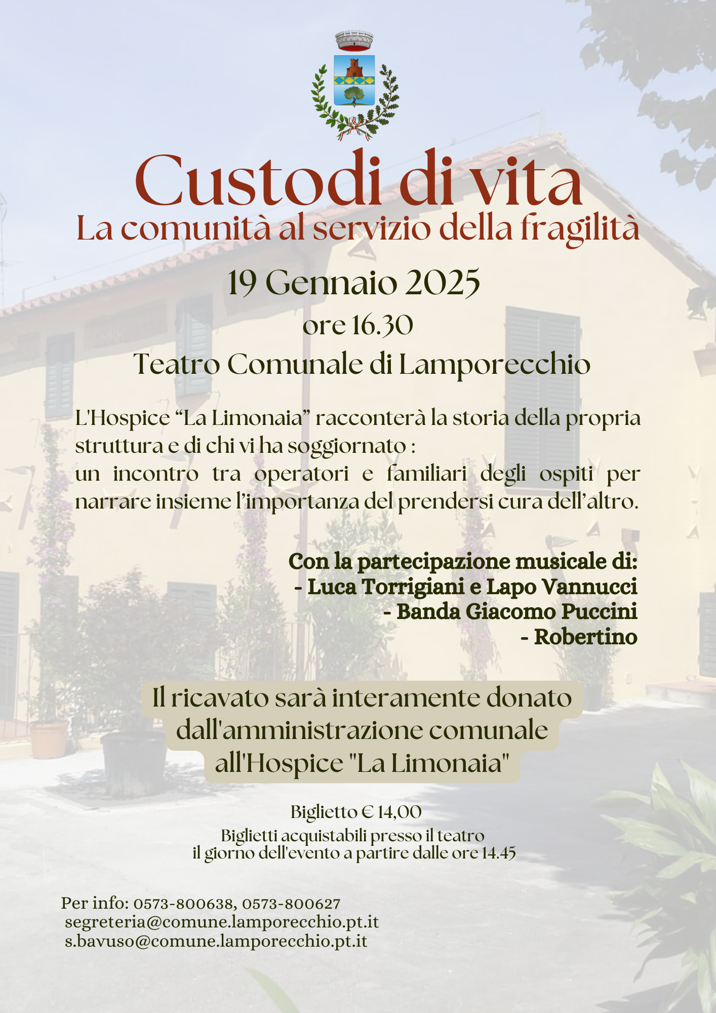 Il prossimo 19 gennaio 2025 alle ore 16:30, presso il Teatro Comunale di Lamporecchio, si terrà l’evento "Custodi di vita – La comunità al servizio della fragilità".