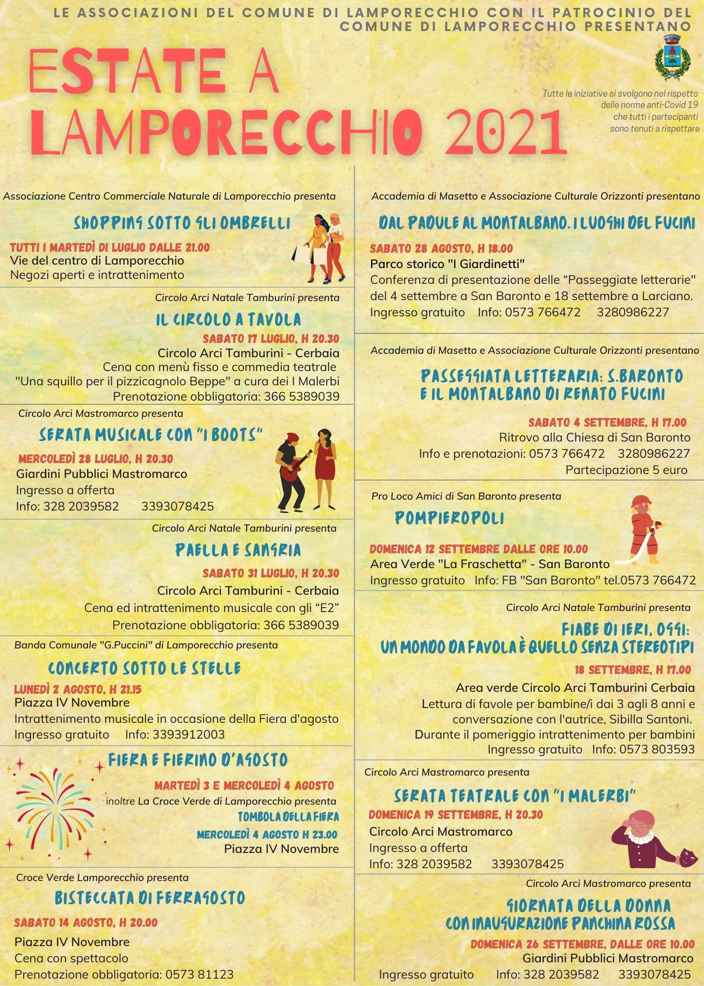 Le Associazioni del Comune di Lamporecchio con il patrocinio del Comune di Lamporecchio presentano i seguenti eventi: