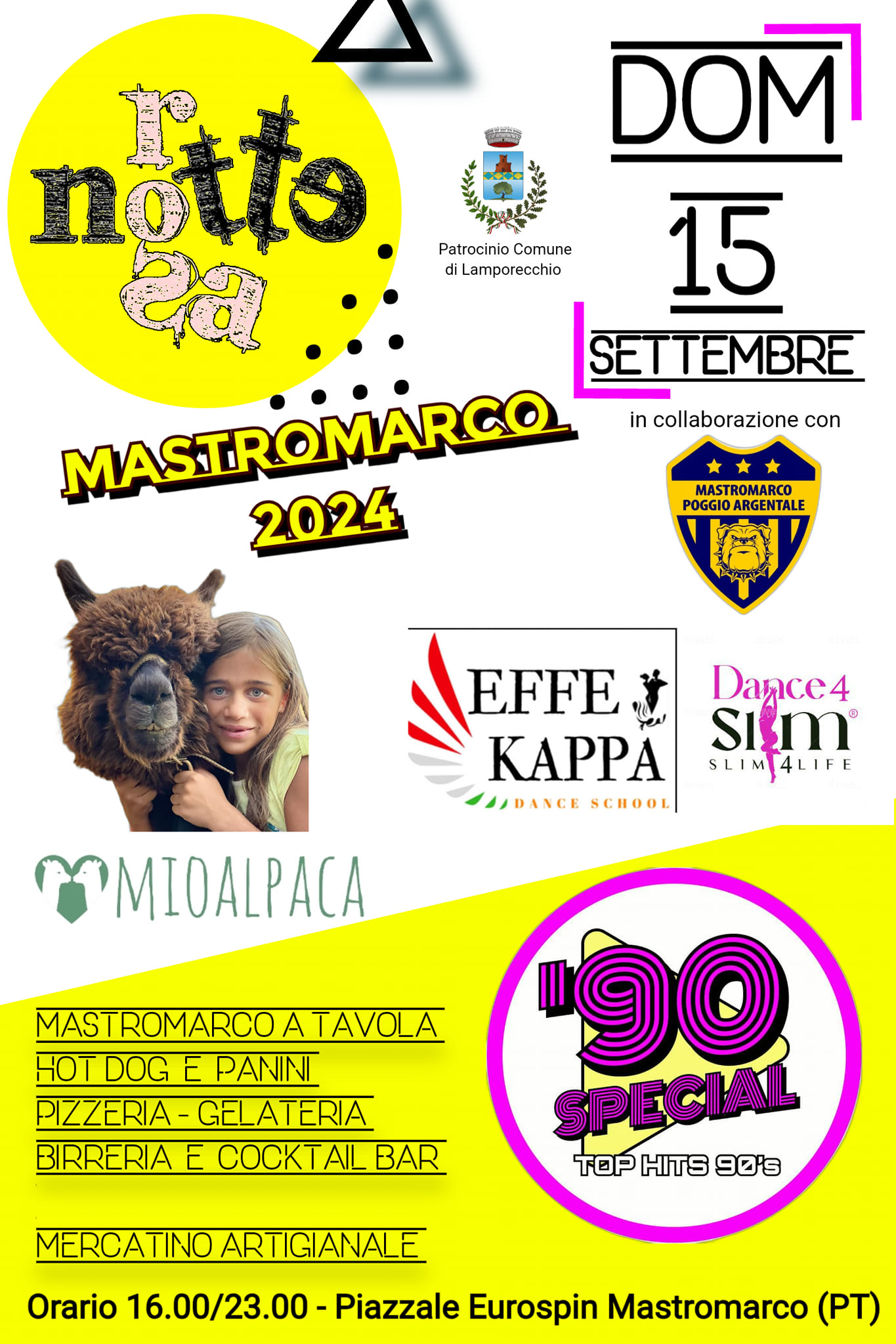 Domenica 15 settembre dalle ore 7:30 presso piazzale Eurospin Mastromarco si terrà la manifestazione "NOTTE ROSA MASTROMARCO 2024" con musica Top Hits 90's, mercatino artigianale, Hot dog e panini, pizze e gelati, birre e cocktail bar.
