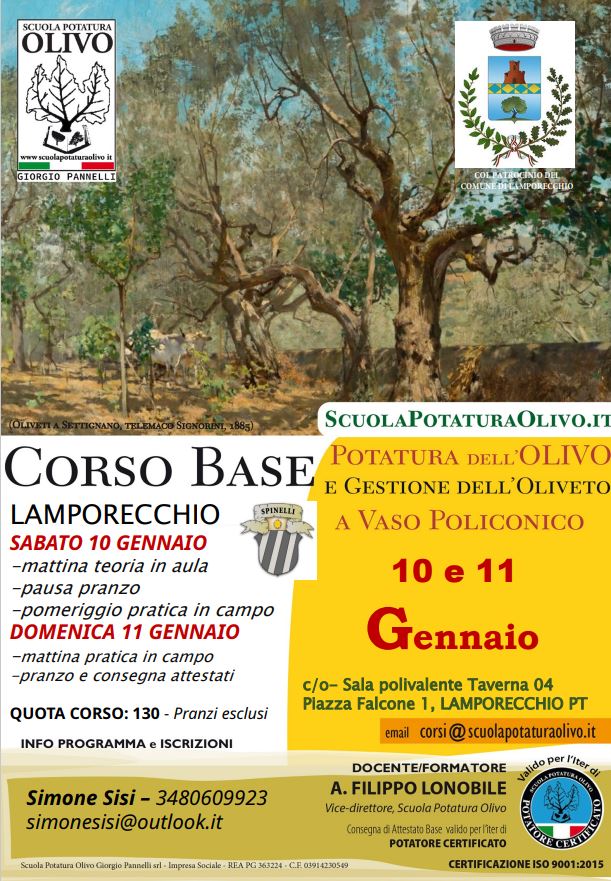 L'Amministrazione comunale rende noto che con l'arrivo del nuovo anno si svolgerà il corso di Potatura dell'Olivo e Gestione dell'Olivo nei giorni 10 e 11 gennaio 2026.
