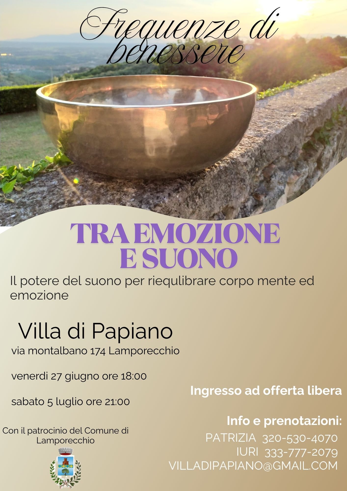 Si terrà presso Villa di Papiano un ciclo di tre incontri per scoprire come il suono e le vibrazioni possono migliorare l'equilibrio energetico e il benessere generale.