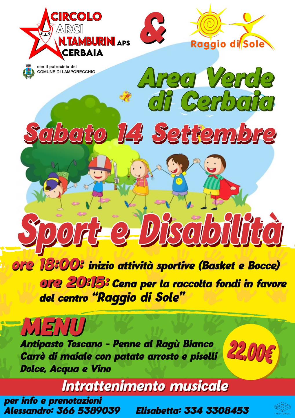 Sabato 14 settembre alle ore 18:00 presso l'area verde del circolo Arci Tamburini in loc. Cerbaia si terrà la manifestazione "Sport e disabilità" con attività sportive (basket e bocce).